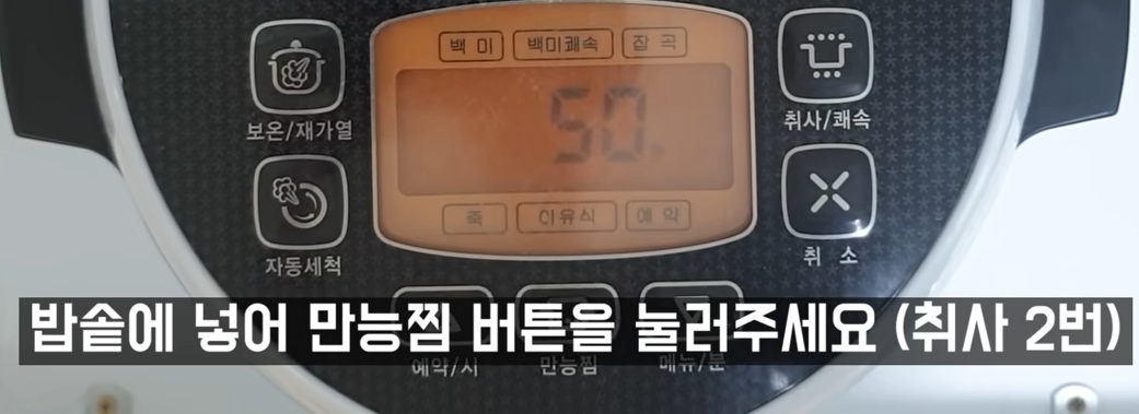 마지막으로 밥솥의 만능찜 버튼 혹은 취사 2번을 눌러주면 완성입니다.