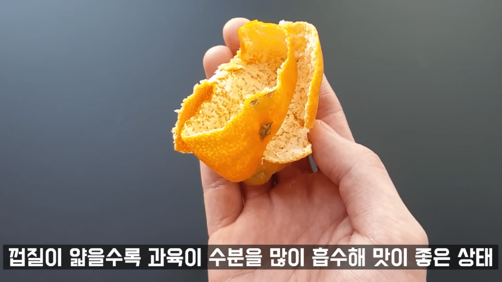 껍질이 얇을수록 과육이 수분을 많이 흡수해 맛이 좋은 상태라고 합니다.