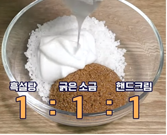 선, 준비물로는 흑설탕과 굵은 소금, 그리고 핸드크림이 필요합니다.