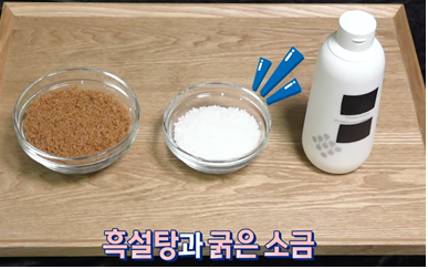 흑설탕과 굵은 소금에는 미네랄과 비타민이 풍부하게 함유되어 있어 피부에 좋은 효과를 가져옵니다.