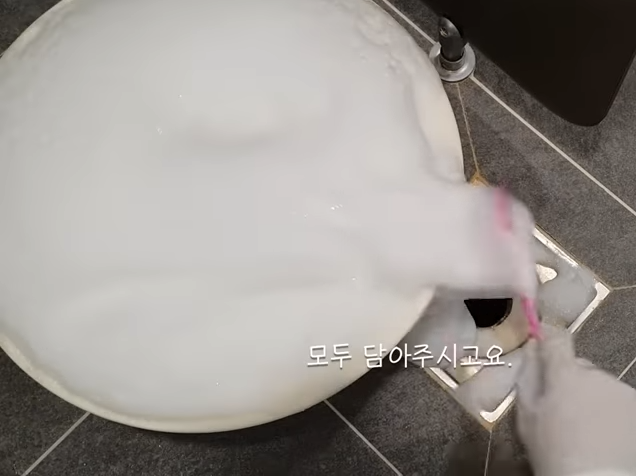 3. 배수구에 거품을 묻힌 후 사용하지 않는 칫솔이나 세척솔을 이용하여 배수구를 청소해줍니다.