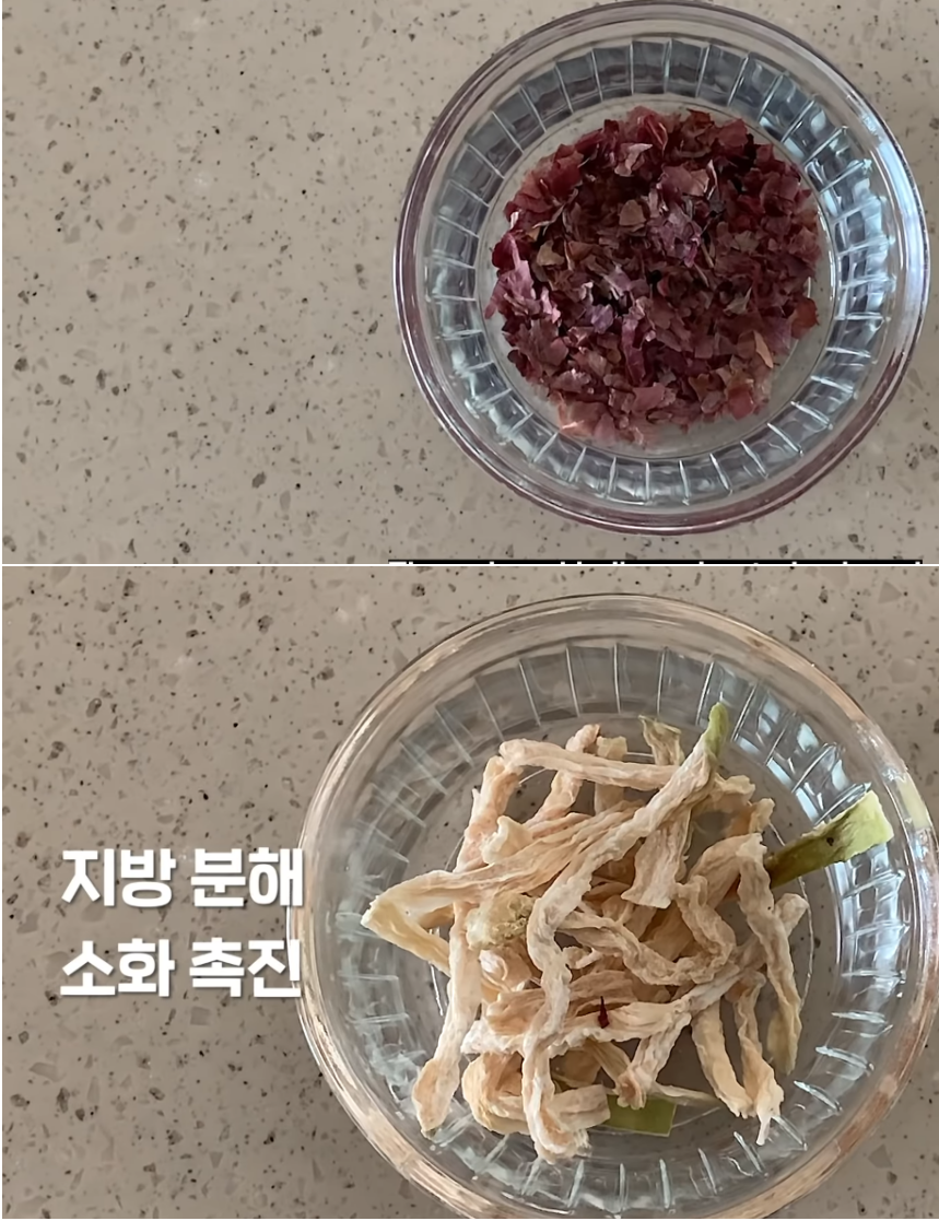 뱃살티를 끓일 때 양파껍질과 무말랭이를 1:2 비율로 넣어서 만든다고 하는데요.
