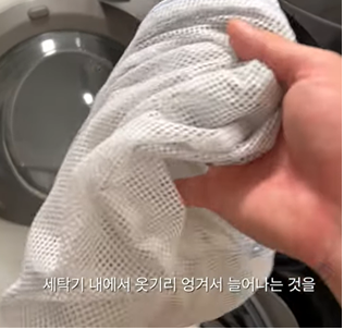 티셔츠를 세탁할 때 세탁망에 그 티셔츠 한 장만 넣고 세탁을 합니다.