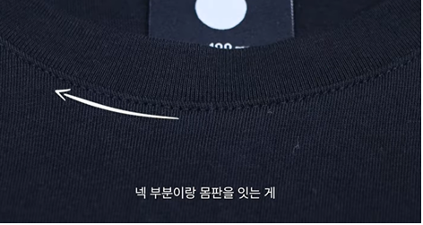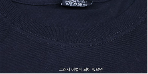 티셔츠의 목 부분의 봉제를 보실 때에는 크게 세가지를 보시면 된다고 하는데, 어떻게 되어있는게 잘 안 늘어나면서 탄탄한 봉제인지 확인할 수 있는 방법입니다.