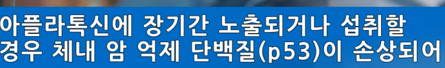 아플라톡신에 장기간 노출되거나 직접 섭취할 경우 체내에 있는 암 억제 단백질이 손상되어 간암을 유발하는 것입니다.