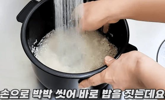 보통 밥을 할 때 솥에 쌀을 넣고 물을 받아 손으로 박박 씻어 바로 밥을 짓는데요.