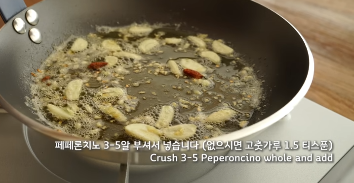 페페론치노 3-5알 부셔서 넣습니다 (없으시면 고춧가루 1.5 티스푼)