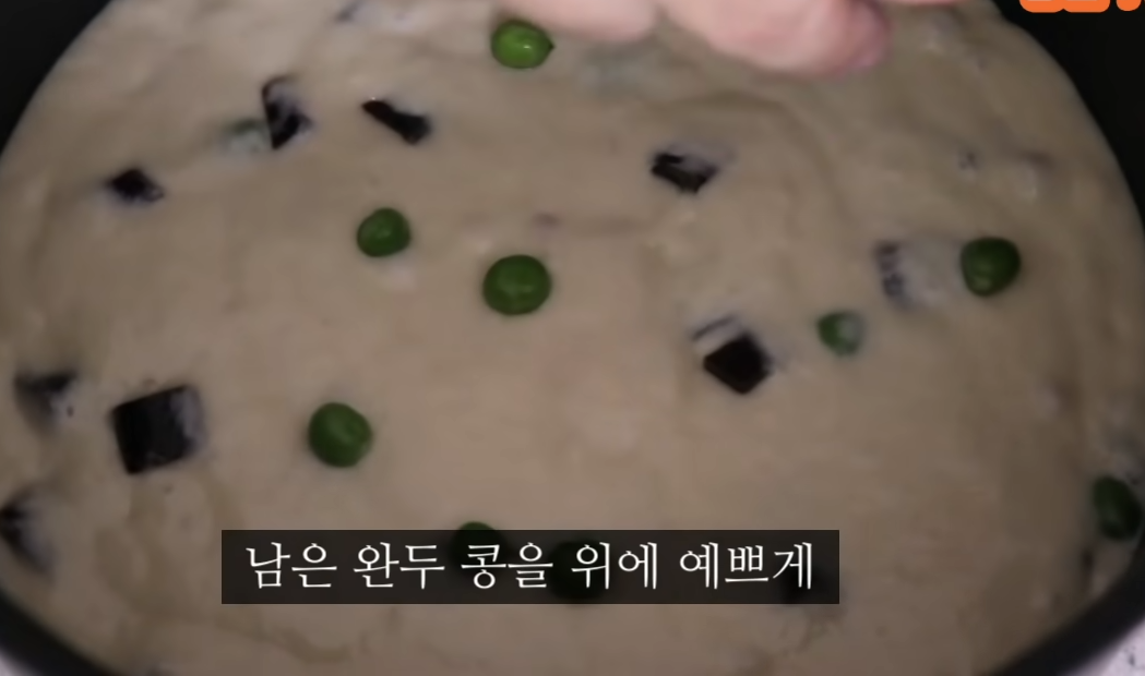 위를 평평하게 놓은 후 남은 완두콩을 위해 예쁘게 올려줍니다.