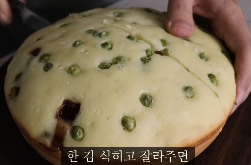 한김 식히고 잘라주면 막걸리 향과 중간중간 씹히는 양갱이 달콤하고 고소한 완두콩 조화가 참 좋아요.
