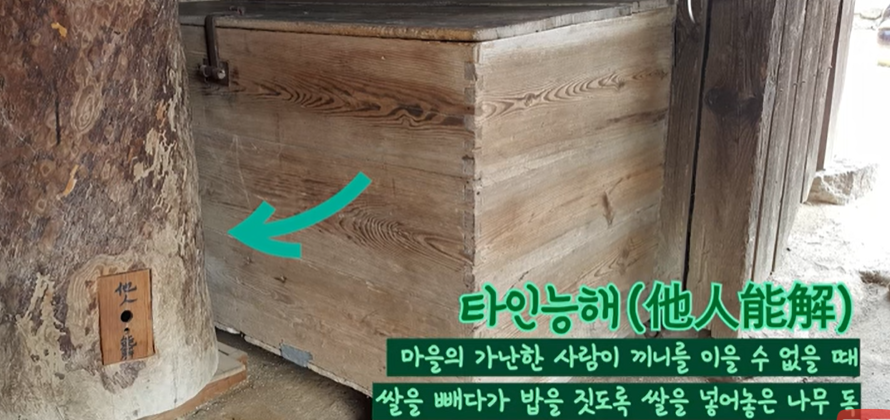 타인능해는 마을의 가난한 사람이 끼니를 이을 수 없을 때 쌀을 빼다가 밥을 짓도록 쌀을 넣어놓은 나무 독을 말합니다. 쌀은 재물을 의미하므로 꼭 이곳에 다녀오시기 바랍니다.