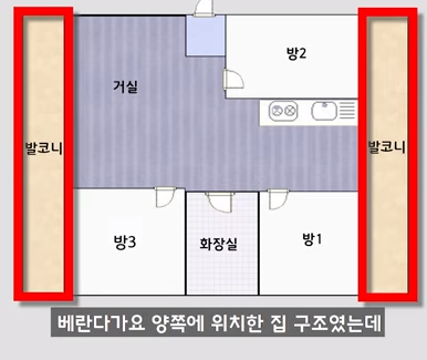 베란다가 양쪽에 있으면 베란다 한곳을 가리든지 커튼을 치던지 해야합니다.