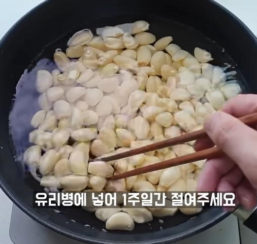 바로 “햇마늘에 식초와 소주를 부어 만드는 요리”입니다.