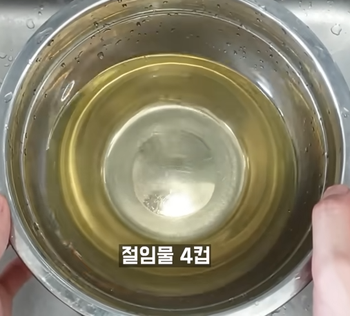 2. 물3컵, 식초3컵을 넣고 1주일간 절여줍니다.
