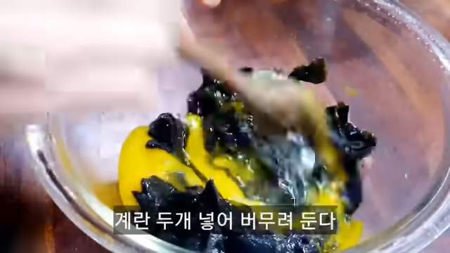 물기가 빠진 김에 생계란 두개를 넣어 버무려줍니다.