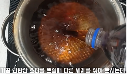위에서 콜라를 사용한 것은 다른 세제를 섞지말라는 의미이고 물만 끓여주시면 됩니다