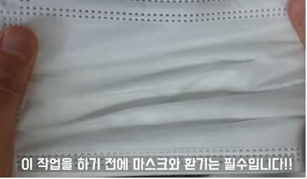과탄산소다를 쓰기 때문에 마스크 착용을 하시고 창문을 열어 환기가 가능한 상태에서 청소합니다.