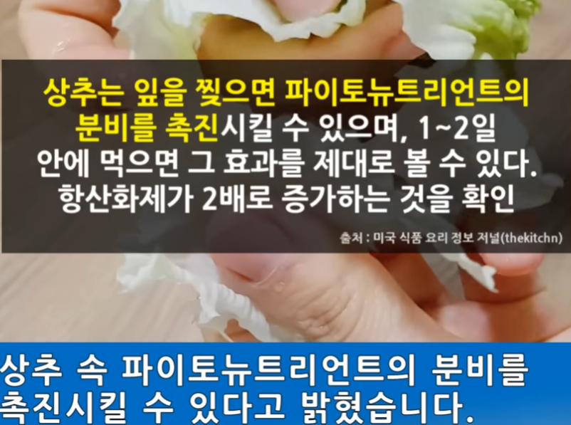 미국의 식품 전문지 더 키친에 따르면, 상추 잎을 찢으면 파이토뉴트리언트 분비가 촉진되어 항산화 성분이 두 배까지 증가한다고 합니다.