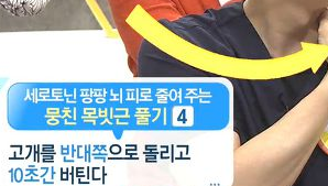 4. 손은 그대로 목빗근을 잡은 상태로 고개를 반대쪽으로 돌린 뒤 10초간 버텨줍니다.