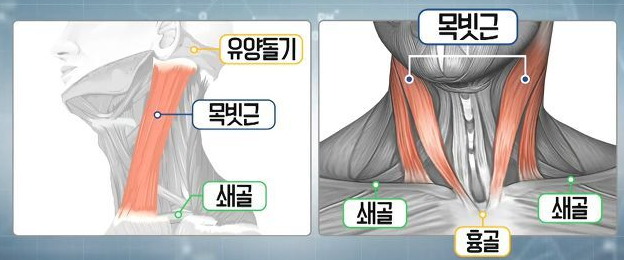 목빗근은 귀와 쇄골 사이에 길게 쭉 뻗어있는 근육입니다.