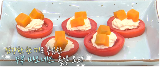 이날 방송에서 탄수화물 커팅 다이어트 음식인 ‘두부 마요네즈’ 레시피가 공개됐는데, 공개된 레시피는 다음과 같다.