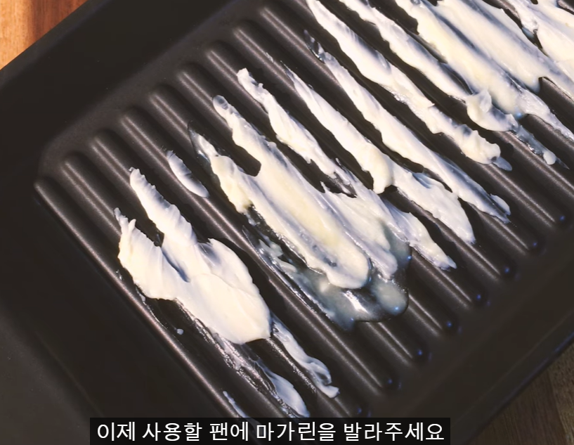 프라이팬 (또는 에어프라이기)에 마가린을 발라줍니다.