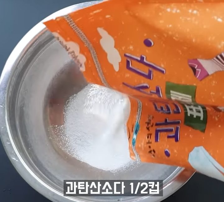 물을 끓여서 과탄산소다1/2컵에 넣어줍니다.