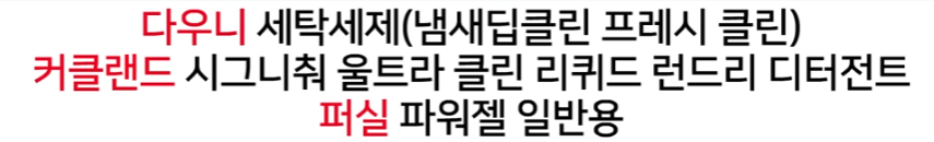 마지막 찌든 때 세척 성능 우수 제품은 커클랜드, 퍼실, 다우니가 차지했는데요.