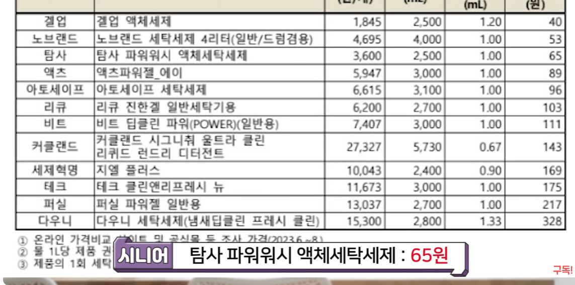 한국소비자원에서 발표한 가격은 훨씬 싼대 찌든때가 잘빠지는 세제