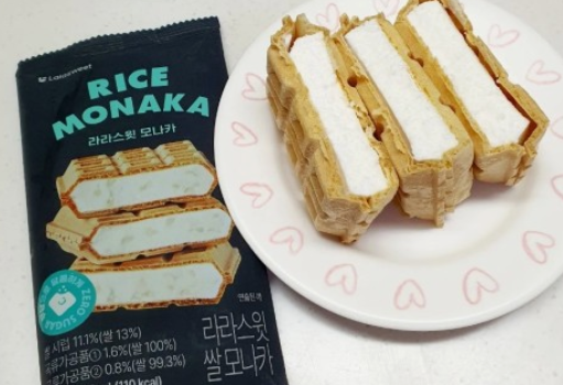 라라스윗은 롯데칠성음료의 제로 슈거 소주 브랜드 '새로'와의 콜라보로 '쌀 모나카'를 선보였습니다.