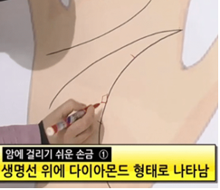 이어 암에 걸리기 쉬운 손금은 생명선 위에 다이아몬드 형태가 나타난다고 설명했는데, 물론