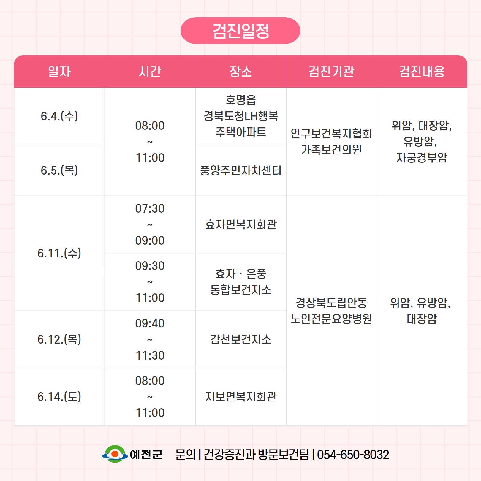 검진내용: 위암, 대장암, 유방암, 자궁경부암