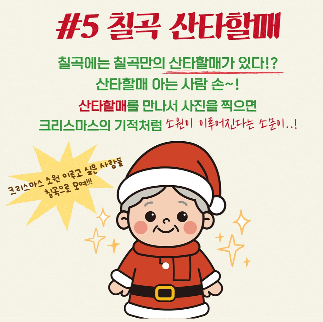 아래는 2025년 럭키칠곡 크리스마스 마켓 (Lucky Chilgok Christmas Market)에 대한 정보 정리입니다.
