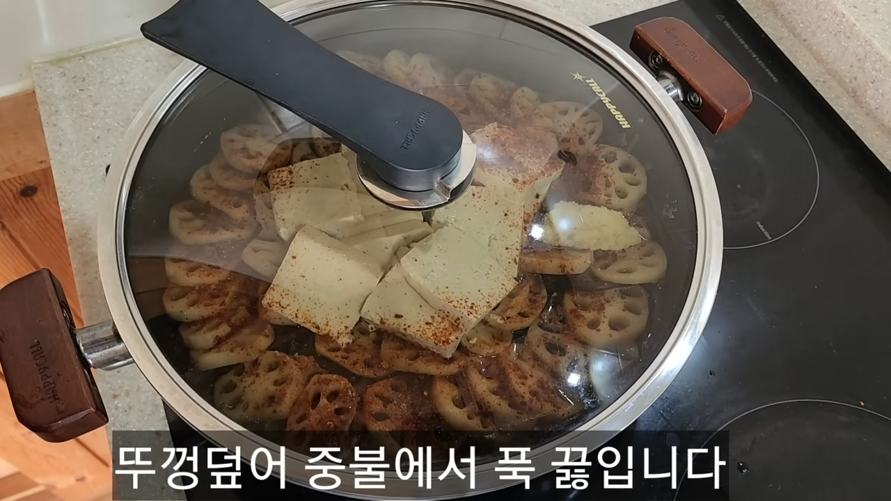 그리고 뚜껑을 덮은 후 중불에서 끓여줍니다.