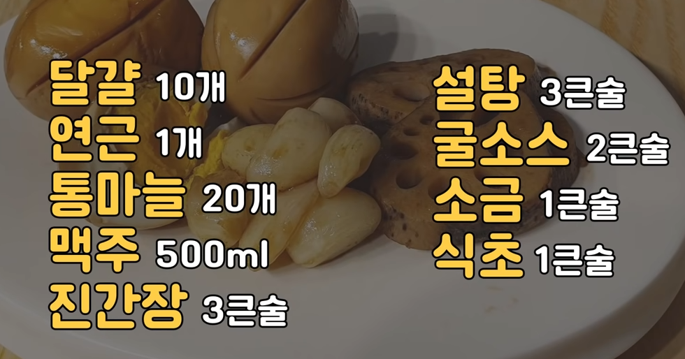 달걀 10개, 연근 1개, 통마늘 20개