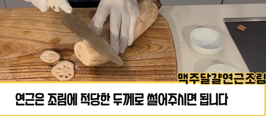 3. 연근은 조림에 적당한 두께로 썰어서 준비합니다.