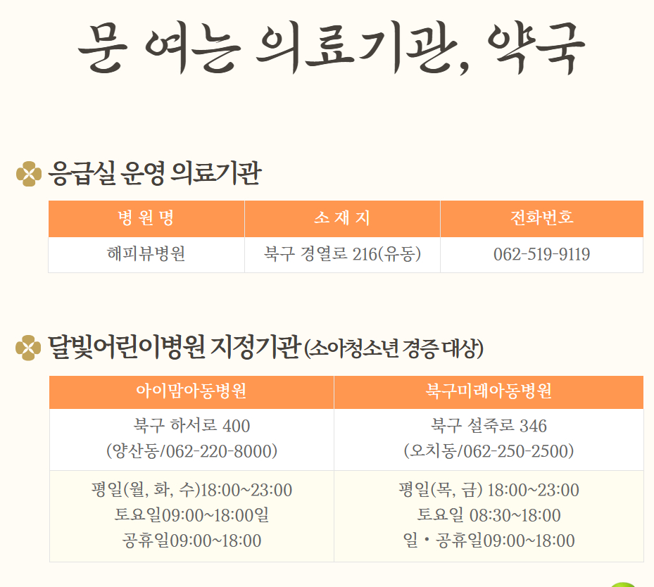 2026년 광주 북구설날 문여는 의료기관, 약국안내