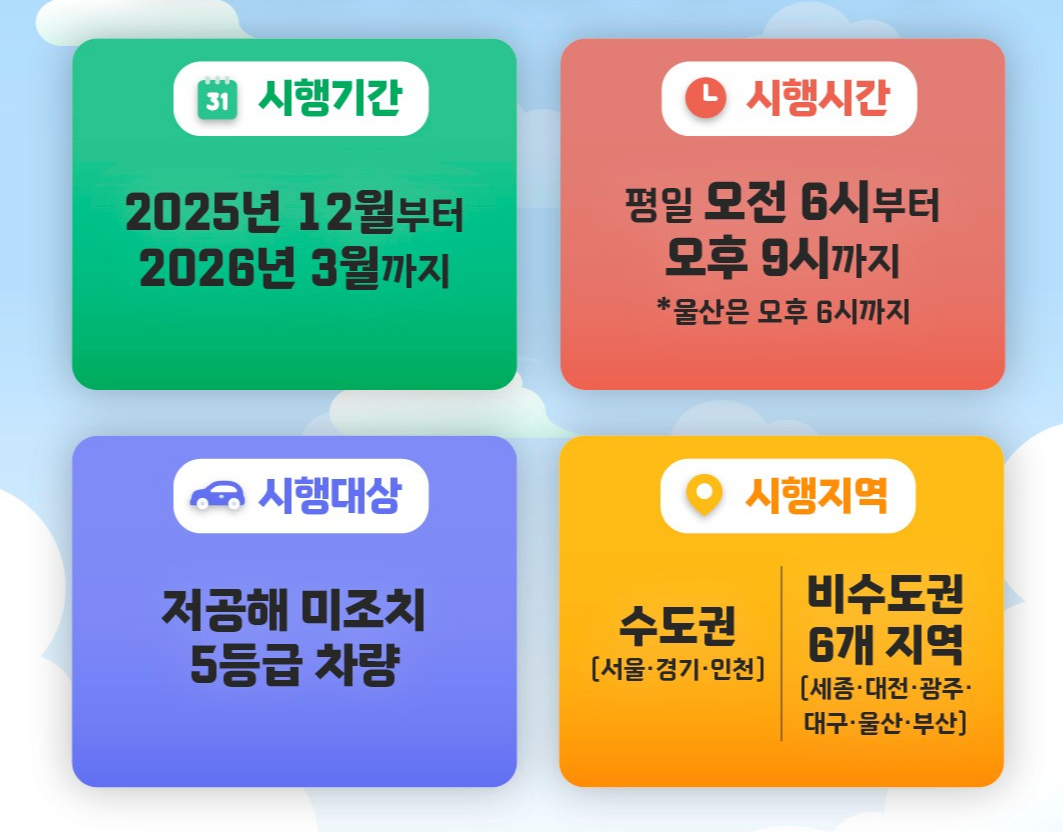 - 운행제한 기간: 2025년 12월 ~ 2026년 3월 (겨울철)
