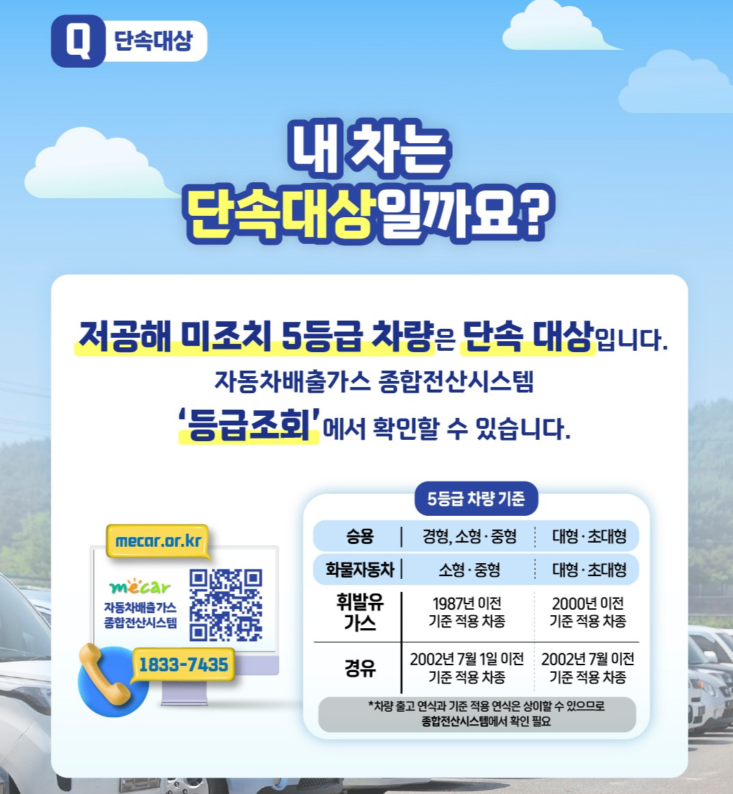 - 대상 차량: 배출가스 5등급 차량 (노후경유차 등)