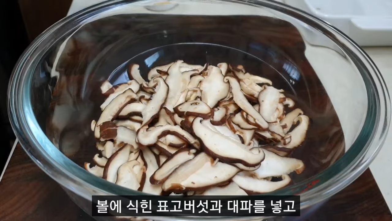 식은 표고버섯에 대파를 넣고 나머지 양념을 넣어줍니다.