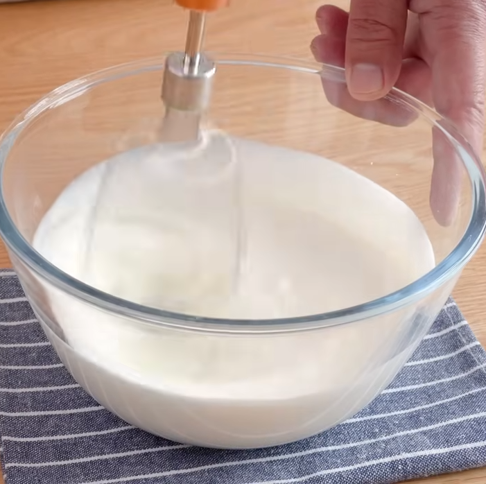 휘핑크링 350g을 휘핑기를 이용해 거품을 내줍니다.