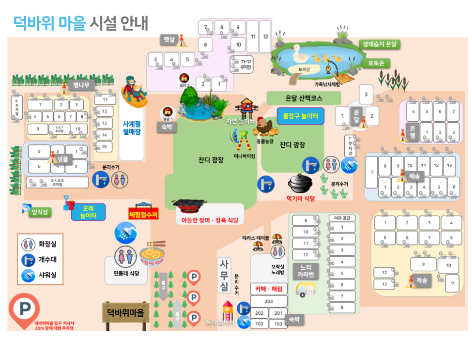 덕바위 마을은 아이들이 각박한 도시 생활에서 배울 수 없는 것들을 자연과 가까이에서 배우고 느끼고 갈 수 있었으면 하는 바람에서 만들어진 곳입니다. 논산 맛집으로 유명하고 솥뚜껑 닭볶음탕이 맛있는 대표 식당 <맛뜰>과 편안한 분위기로 자연을 바라보며 여유를 즐길 수 있는 카페 <온담>이 마을 내에 있습니다. 아이들이 뛰어놀 수 있는 넓은 잔디와 돼지, 오리, 산양 등 다양한 동물을 직접 만나고 접할 수 있는 곳입니다. 미꾸라지 잡기 체험과 그 외의 계절에 맞는 다양한 체험들도 준비되어 있습니다. 남녀노소 즐거운 추억이 될 수 있도록 앞으로도 최선을 다하겠습니다