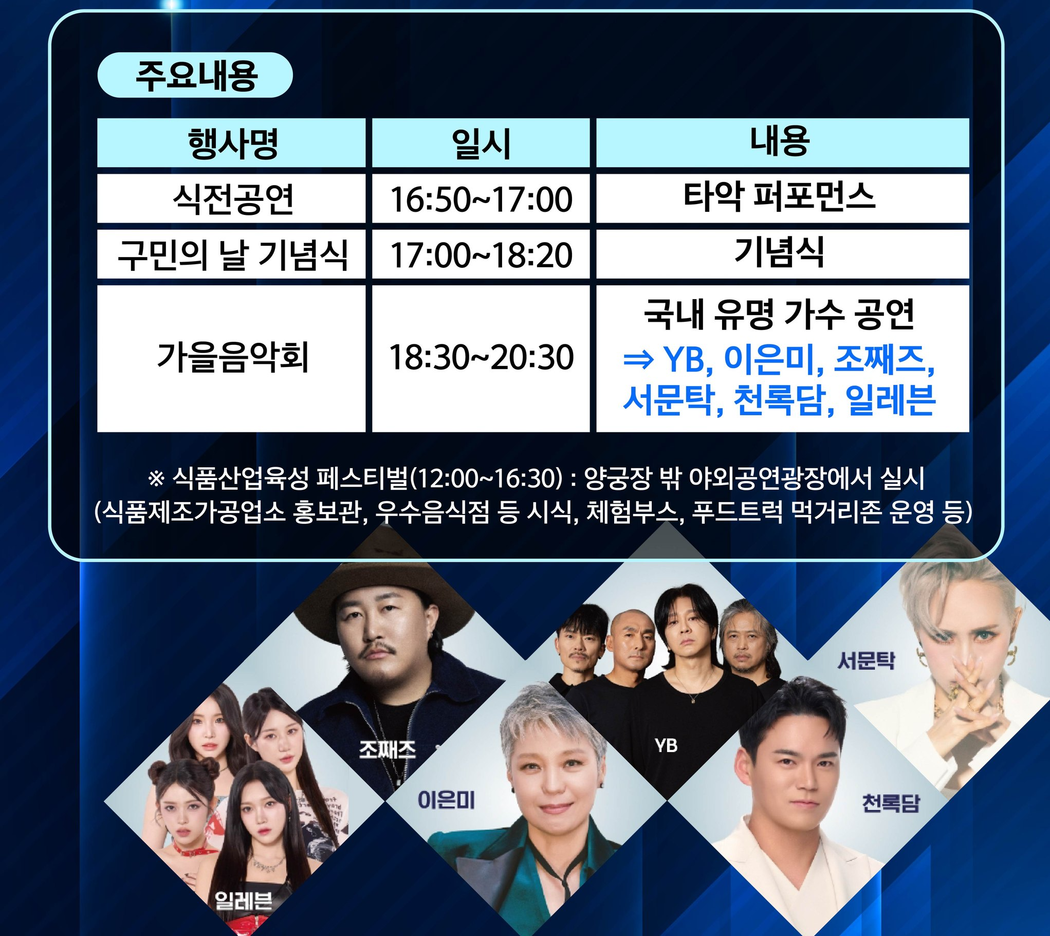*식품산업육성 페스티벌(12:00~16:30) : 양궁장 밖 야외공연광장