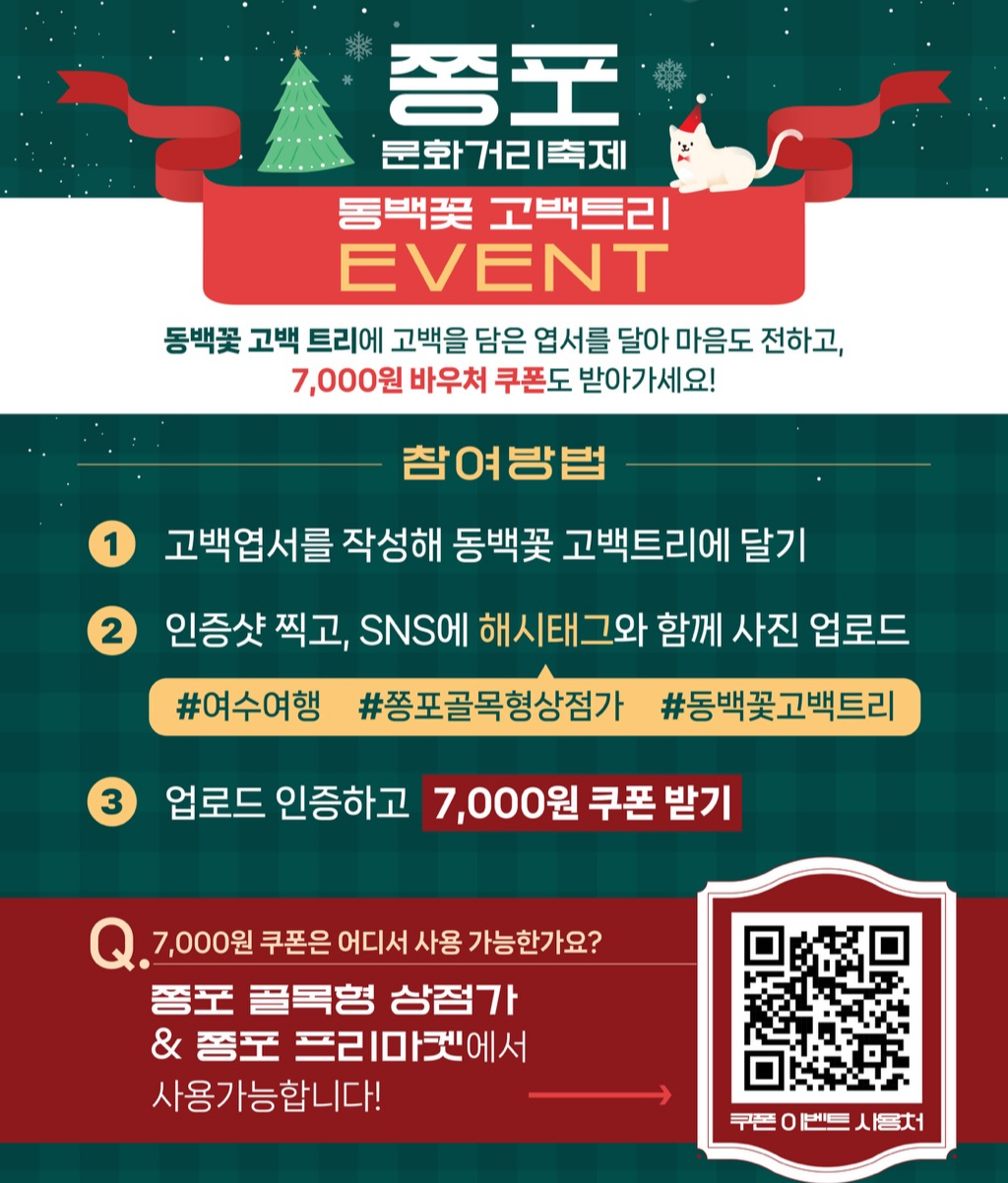프리마켓, 체험행사, 버스킹, 동백꽃 고백트리 꾸미기 등