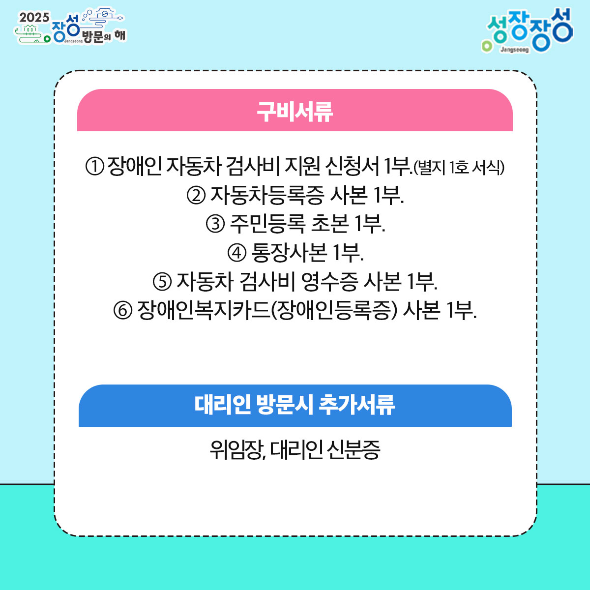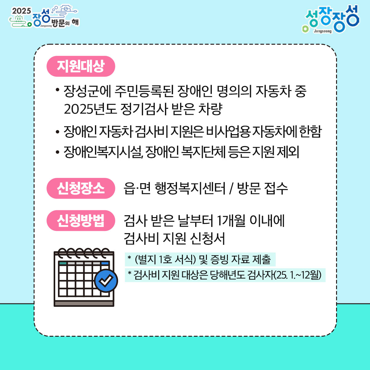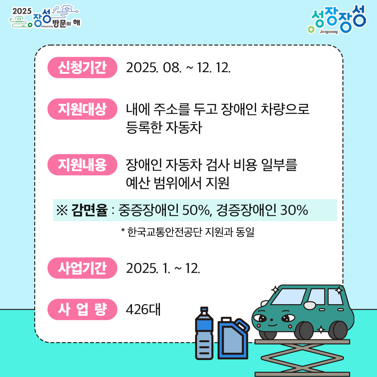 2025년 8월 장성군 장애인 자동차 검사비 지원