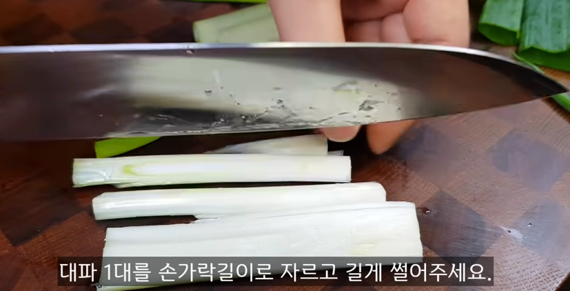 3. 양파 1개는 채썰고, 대파 1대를 손가락 길이로 자르고 길게 썰어 줍니다.