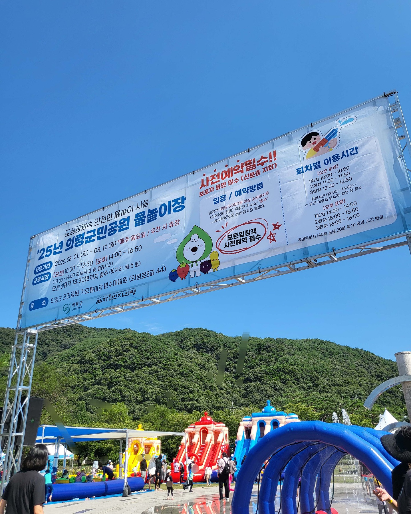 의령군에 따르면, 의령군민공원(구 서동생활공원) 내 여름 야외 물놀이장은 **2025년 8월 1일(금)**부터 정식 개장하며, 운영 기간은 8월 1일부터 8월 17일까지입니다