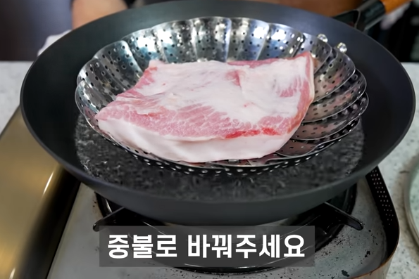 물을 끓이고 그 위에 찜기를 올린 후 껍데기를 아랫면으로 놓고 뚜껑을 덮은 후 중불에서 30분동안 쪄줍니다.