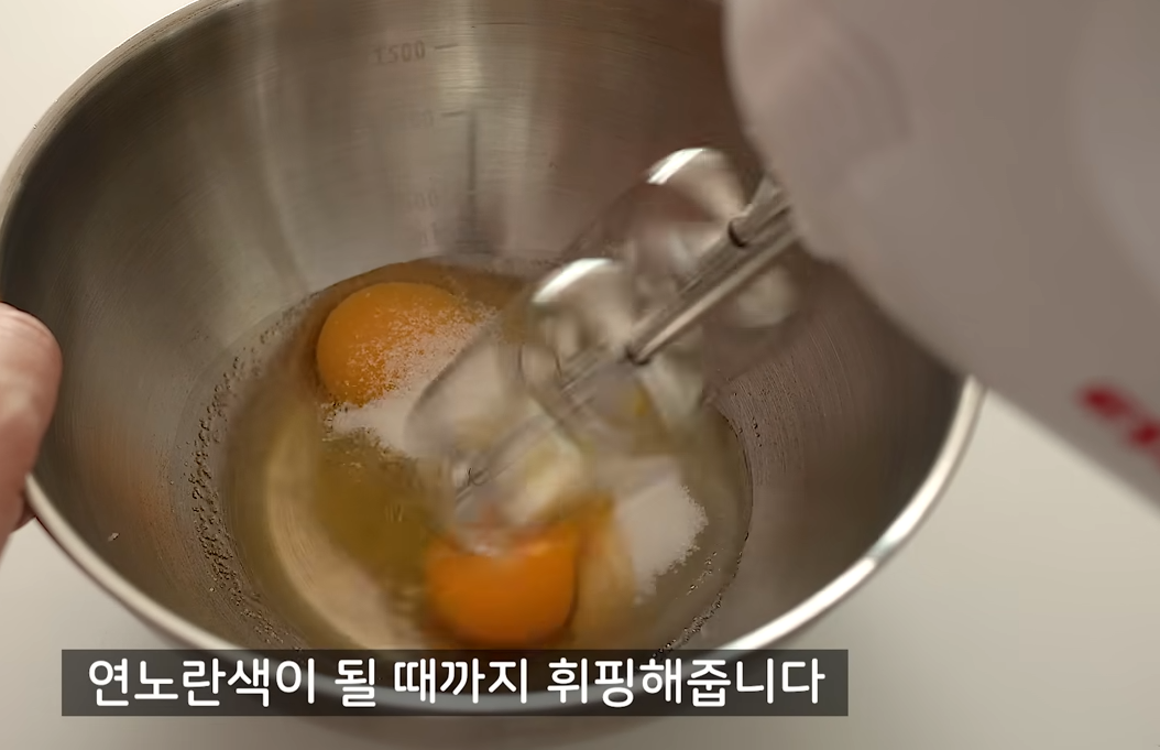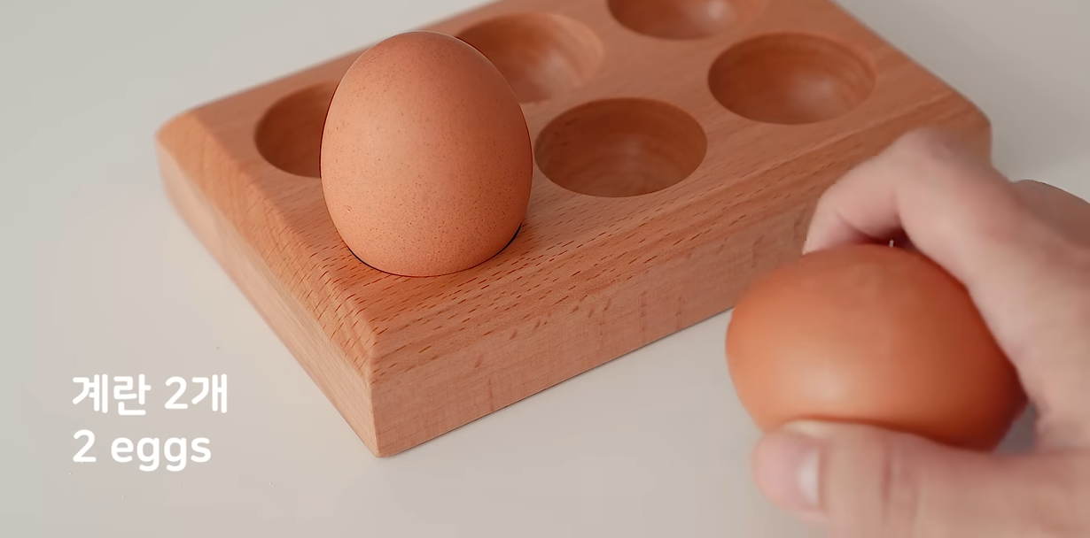 계란 2개를 실온에 두었다가 새로운 믹싱볼에 깨줍니다.