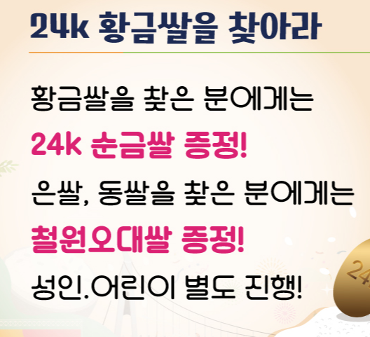 행운의 황금쌀을 찾은 분께는 24k 순금쌀 증정!