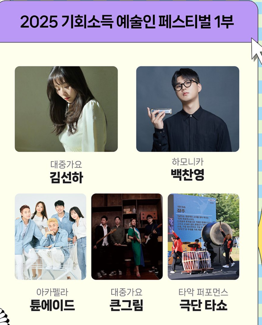 🎤 기회소득 예술인 공연 라인업